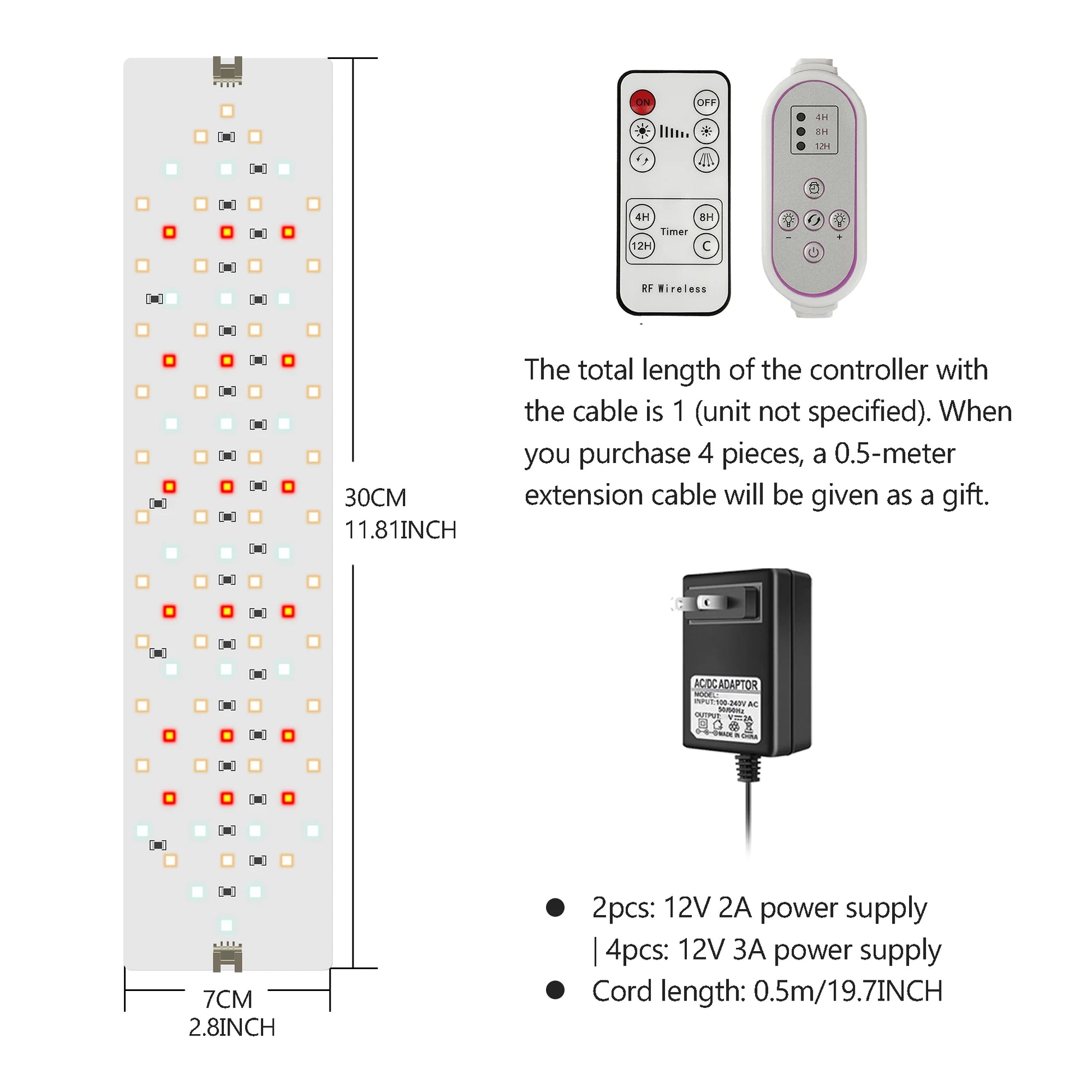 High-efficiency LED chips on a durable light board, aluminum heat sink, and remote control unit for seamless operation and energy-saving plant care.