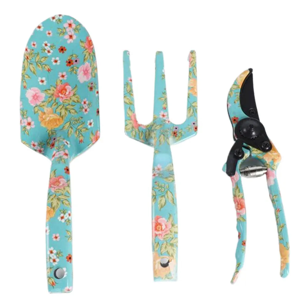 3-Piece Printed Garden Tool Set – Floral Design Hand Rake, Pruning Shear & Trowel