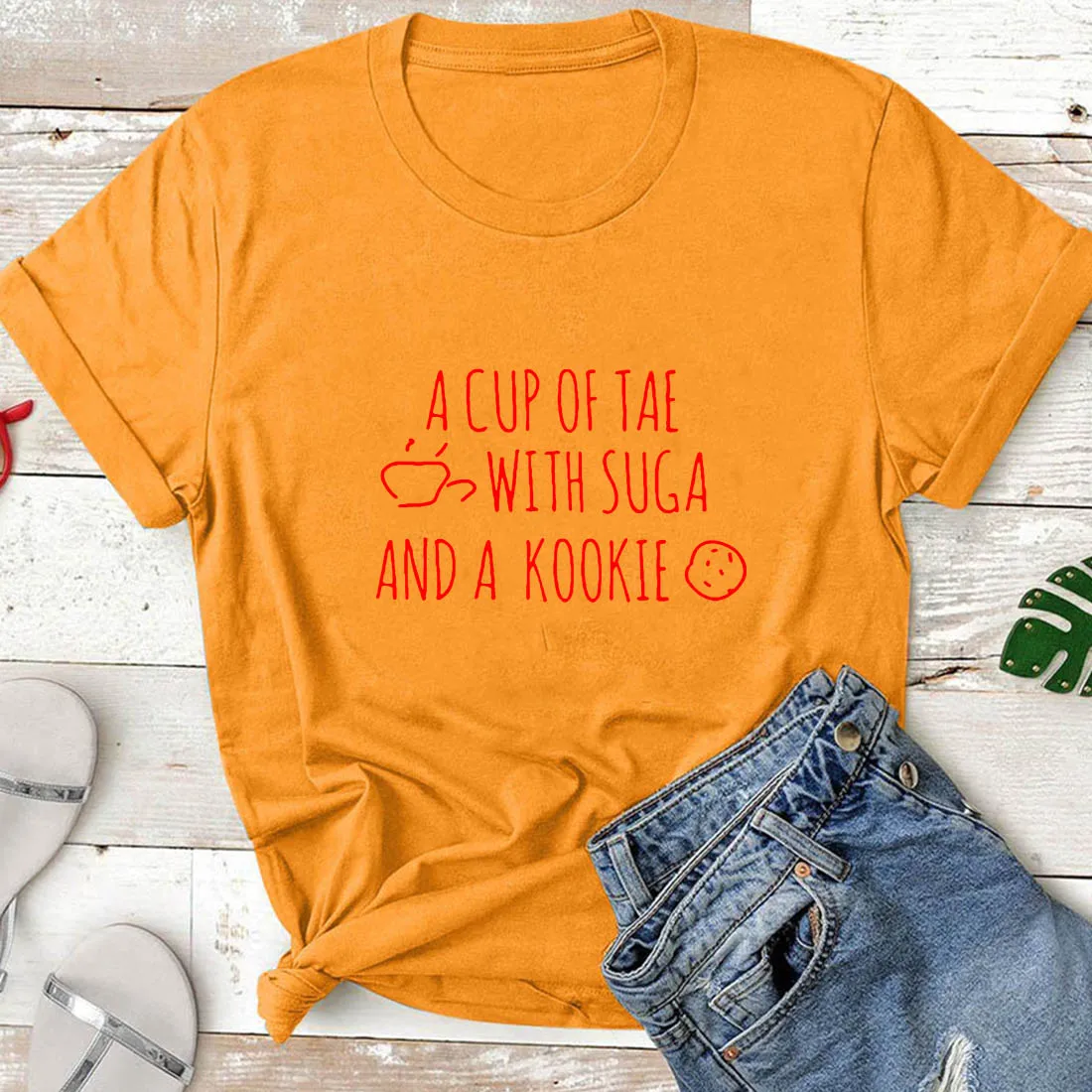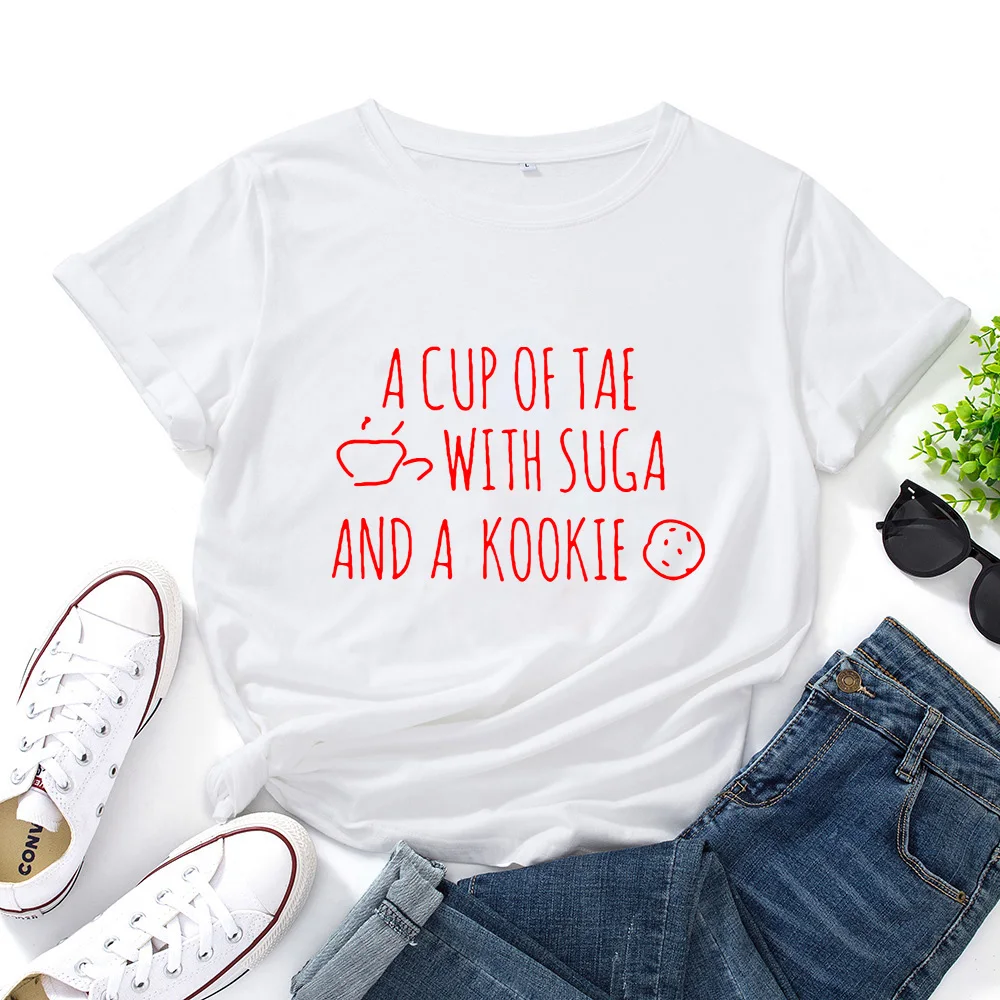 A CUP OF TAE WITH SUGA Graphic Tee – Women's Casual Cotton T-Shirt