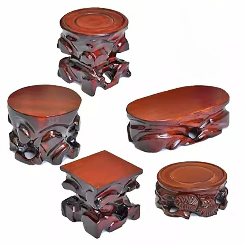 Carved Wood Display Stand – Zen Buddha, Incense Burner, Flower Pot & Tea Set Base