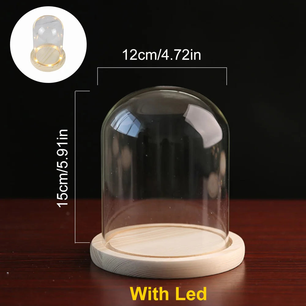 Glass Dome with Wooden Base & LED Light – Elegant Terrarium Display for Gifts & Home Decor