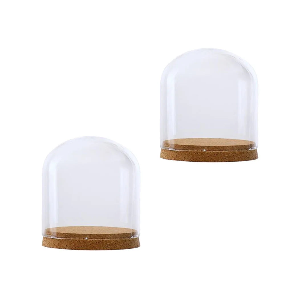 2Pcs Glass Dome Covers – 12x12cm Cloche Bell Jars with Wood Cork Base
