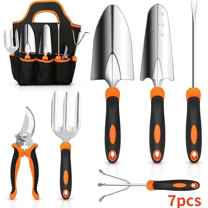 • Includes 7 essential tools: trowel, transplanter, rake, weeder, pruning shears, spray bottle, and gardening gloves