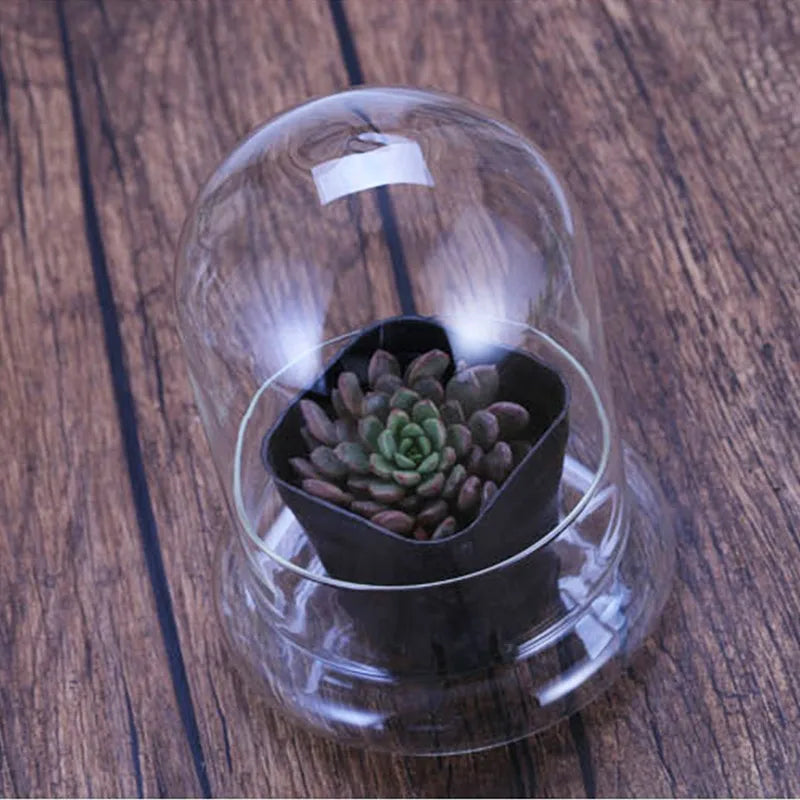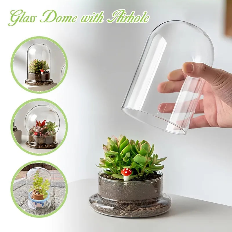 Showcase your greenery in style with this Clear Glass Dome Bell Jar Cloche featuring a convenient air vent—perfect for elegant terrarium displays and tabletop décor.
