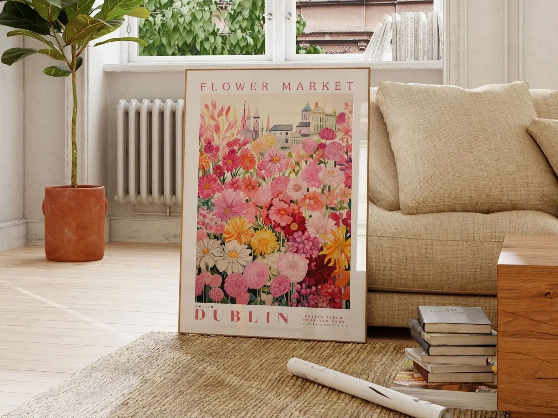 Bring the spirit of Dublin and the beauty of blooms into your home — decorate with the Dublin Flower Market Poster today!