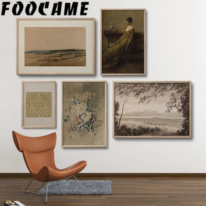 European Vintage Flower Landscape – Luxury Canvas Wall Art Poster for Elegant Living Room Décor
