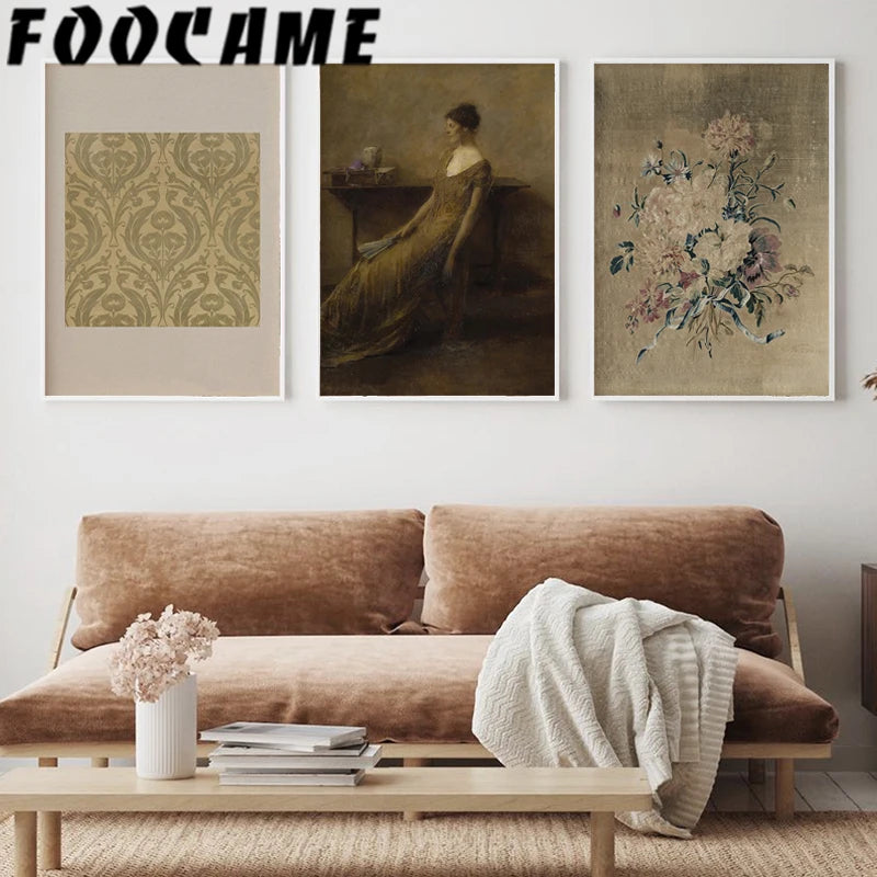 European Vintage Flower Landscape Canvas Art – Luxury Decorative Poster Print for Elegant Living Room Décor