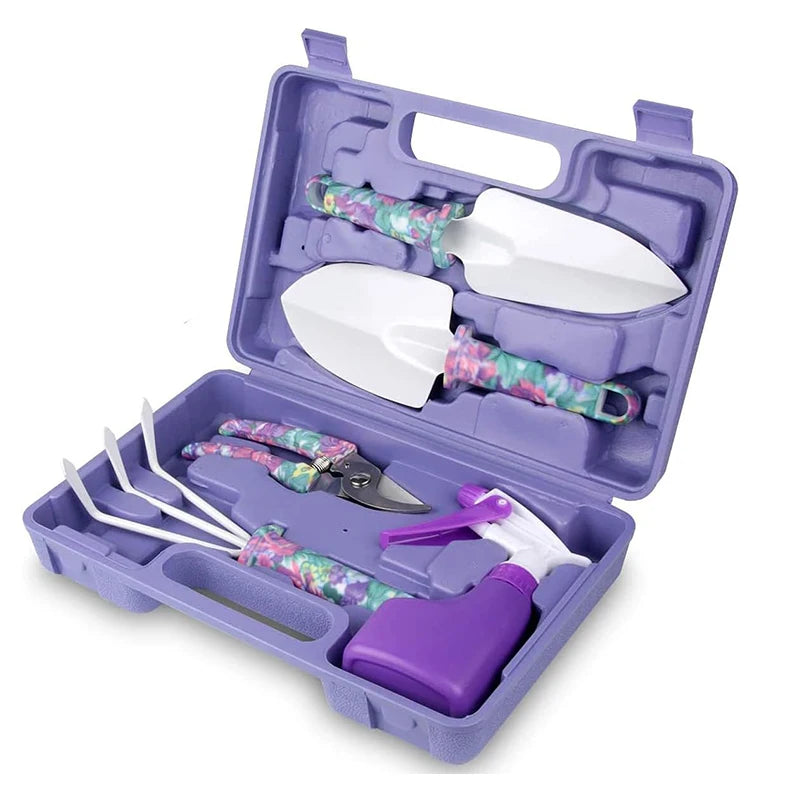 Add charm to your gardening routine with this floral-print horticultural tool set, featuring essential hand tools like pruners, weeder, and a matching spray can — stylish, practical, and perfect for plant lovers of all levels!