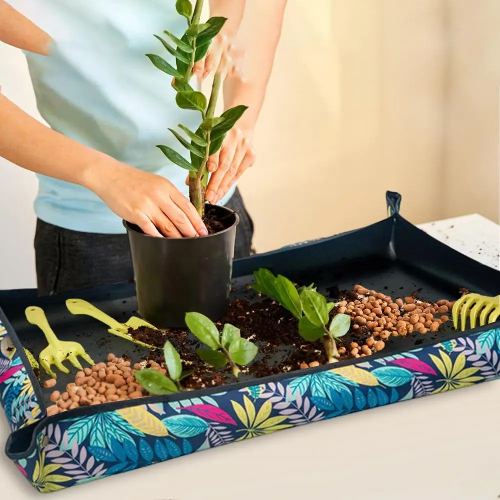 Simplify your gardening tasks with this foldable PE transplanting mat — the perfect waterproof solution for clean and easy repotting, planting, and soil mixing.