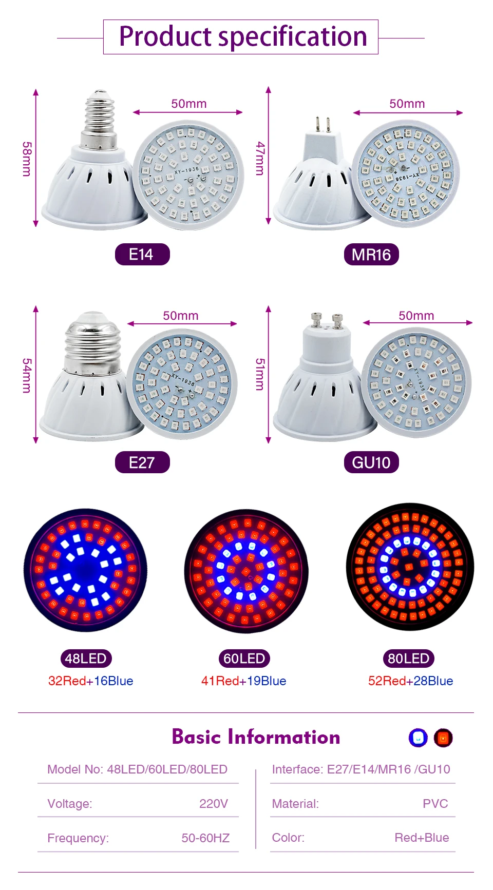 Full Spectrum LED Grow Light Bulb – E27 / E14 / MR16 / GU10 Plant Lamp for Indoor Hydroponic Gardening