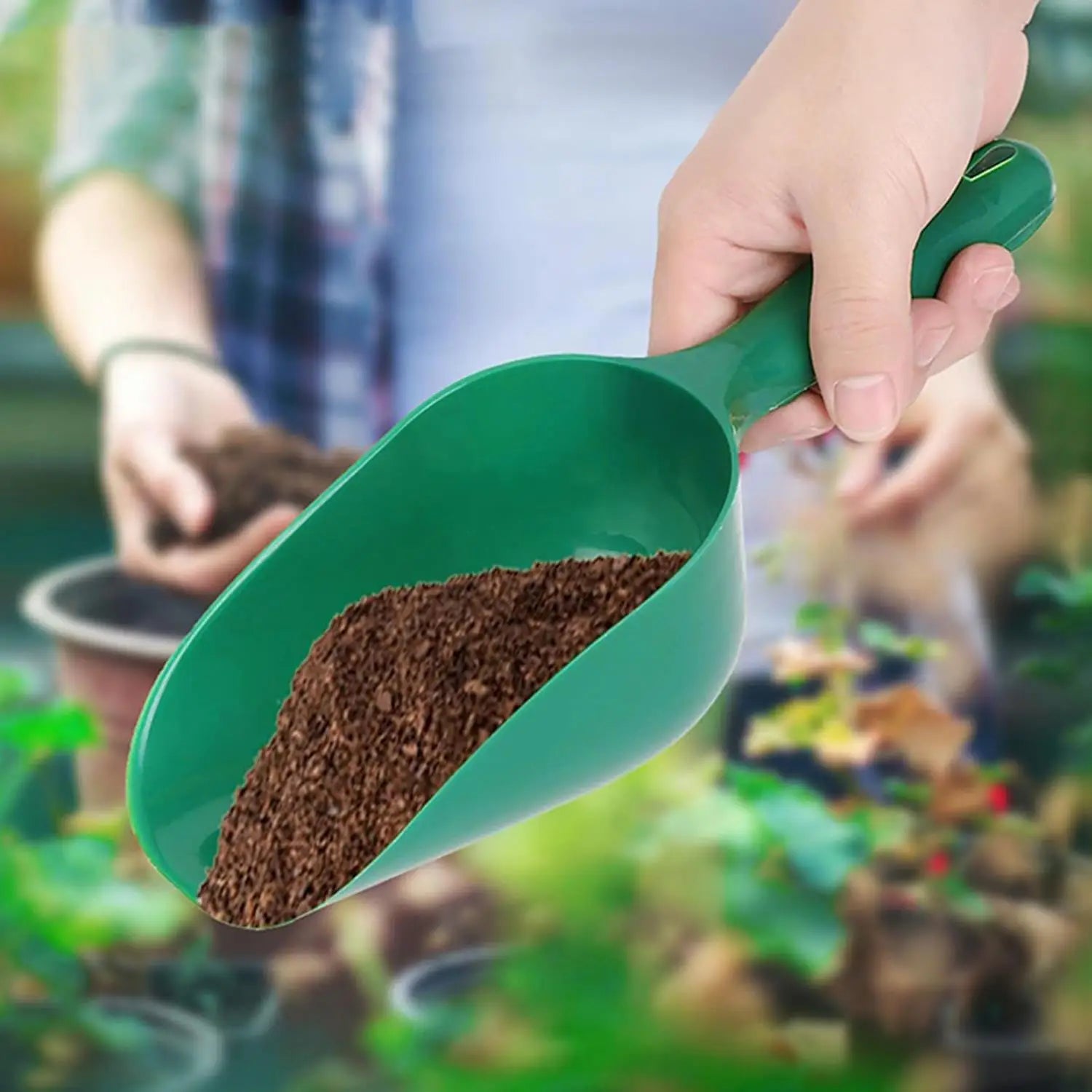 Make planting and potting easier with this multi-function garden scoop — a large-capacity plastic shovel ideal for moving soil, compost, fertilizer, and more in your home garden.