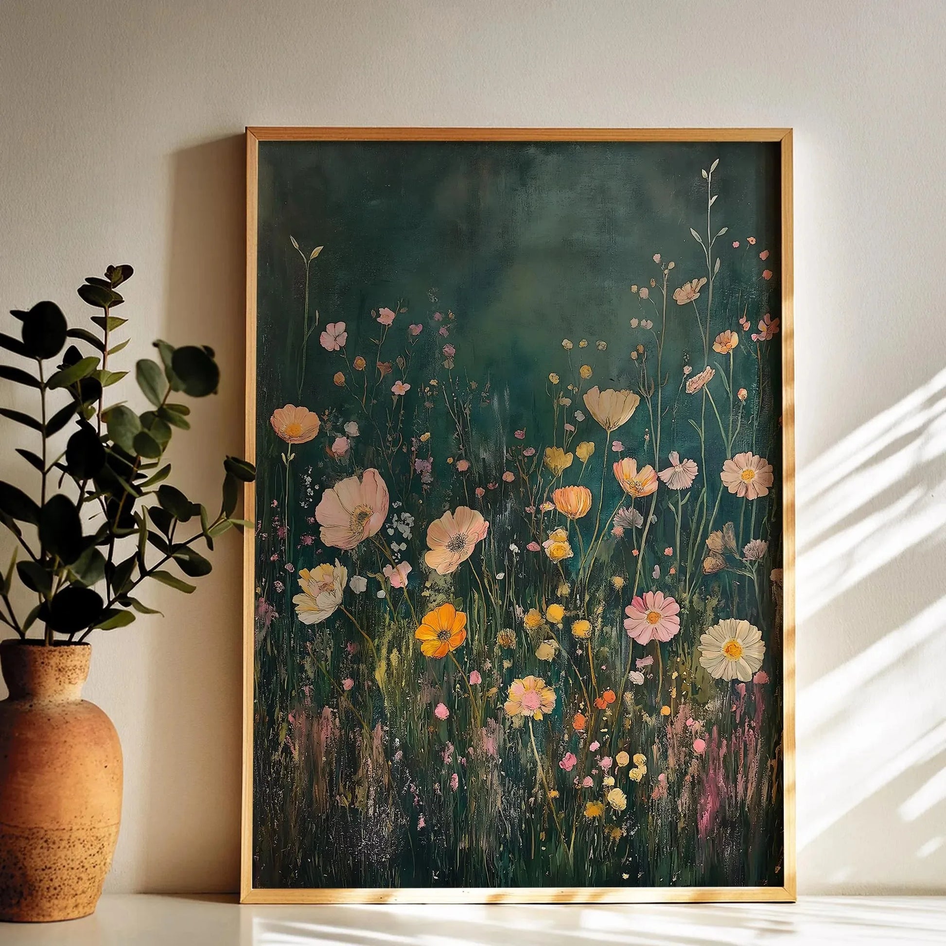 Vintage Wildflower Botanical Canvas Poster – Floral Field Wall Art for Home Decor