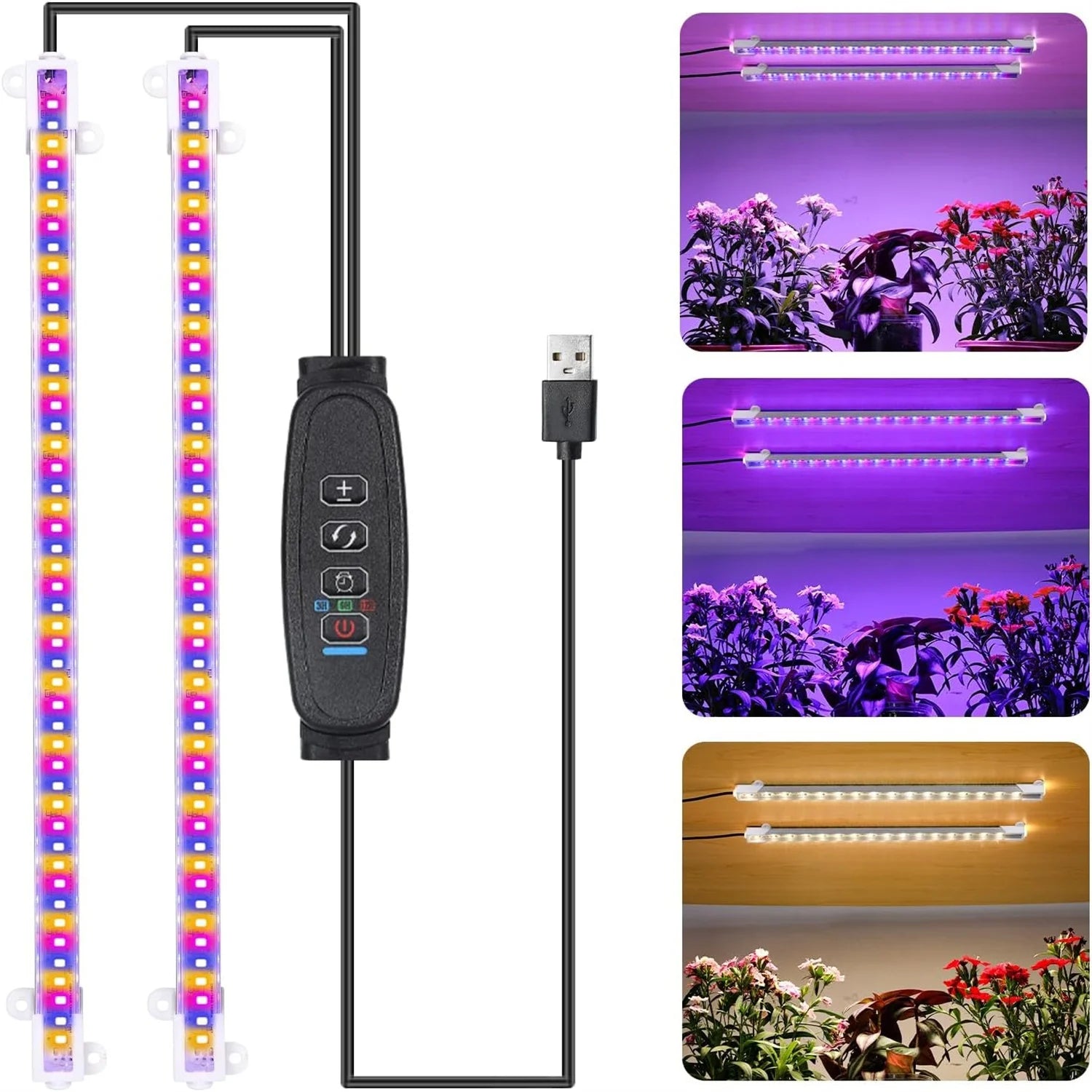Support your indoor garden with this 3-color LED grow light, featuring full spectrum lighting, USB power, and a built-in timer. Perfect for boosting the growth of herbs, flowers, and vegetables in any indoor setting.
