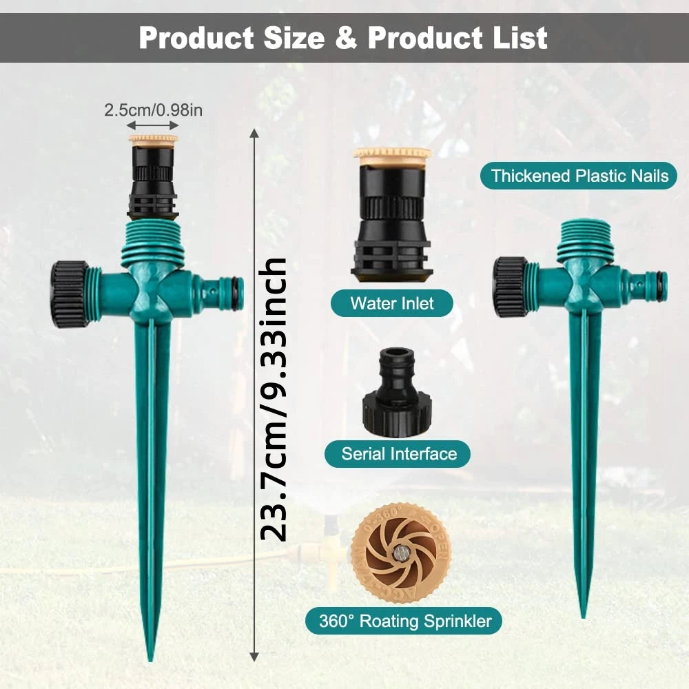 360° Rotating Garden Sprinklers – 3-Pack Adjustable Water Sprayers for Lawn & Plants, Automatic Irrigation System (Green)