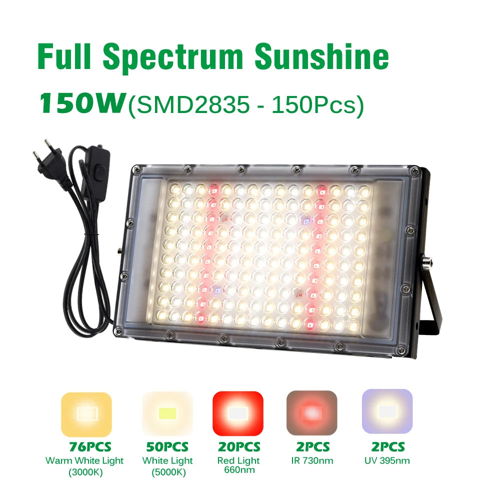 Full Spectrum LED Grow Light 50W/100W – Sunlight-Mimicking Phyto Lamp for Greenhouse & Hydroponic Plants