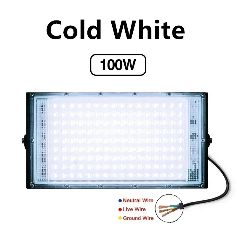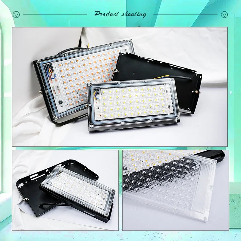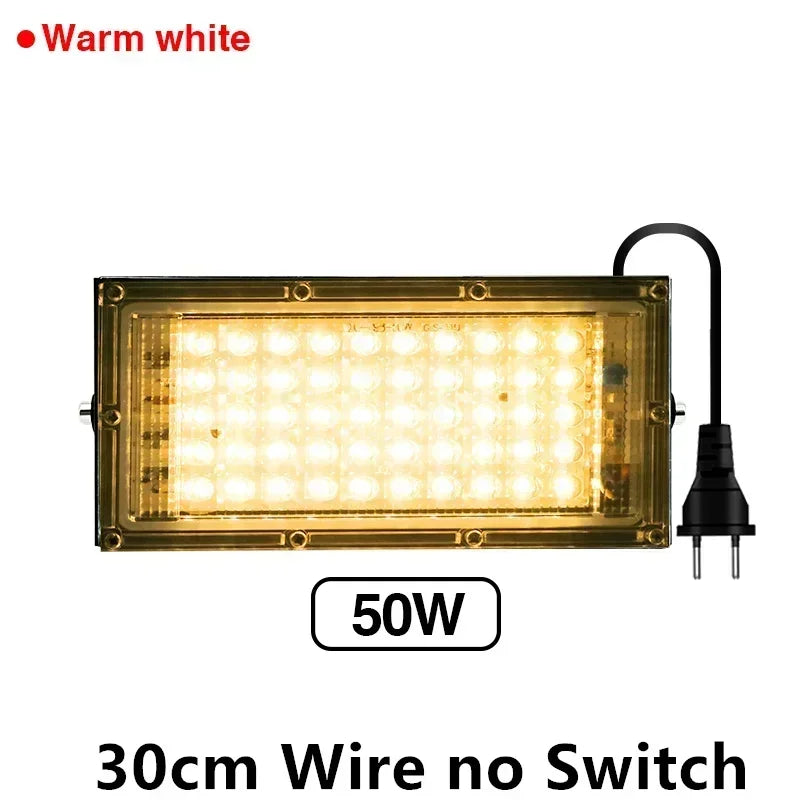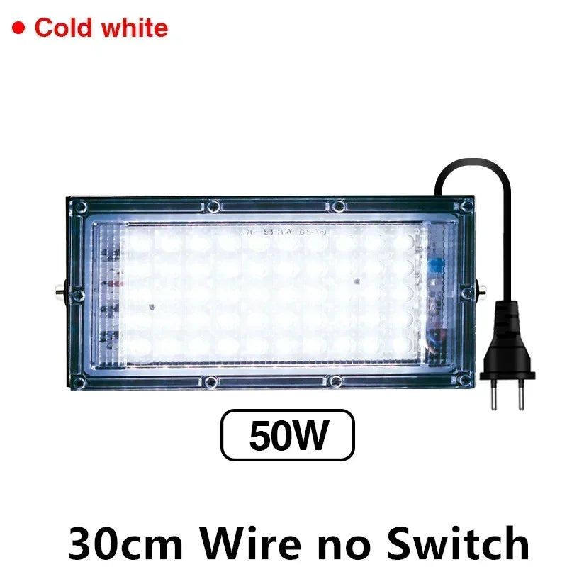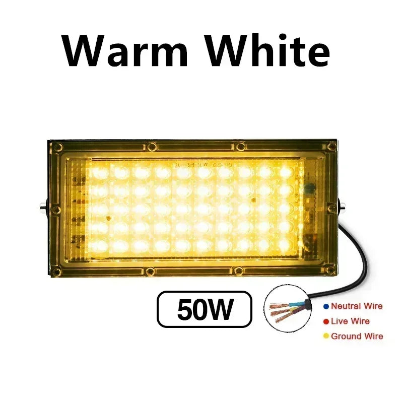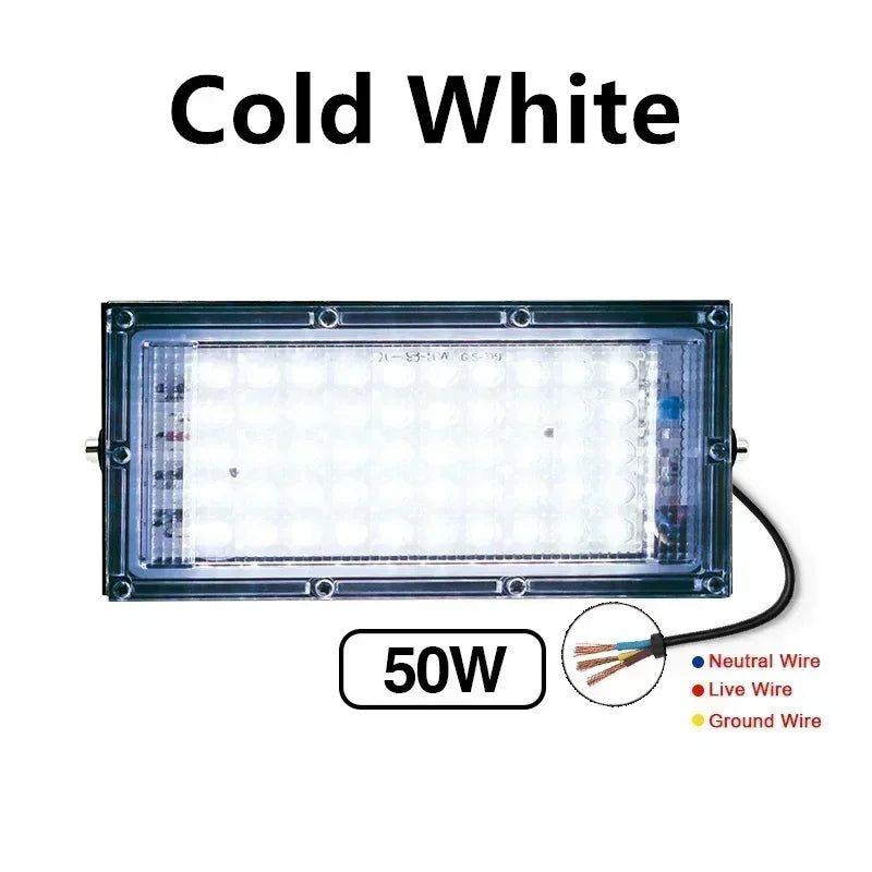 Durable aluminum alloy housing, high-efficiency LED chips, and water-resistant floodlight casing, compatible with 220V AC power.