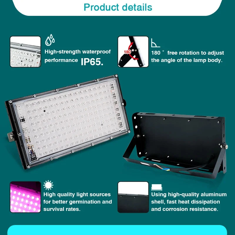 Enhance your plant growth with this 50W/100W LED Grow Light, designed for indoor gardening, greenhouses, and seed cultivation. Featuring full spectrum lighting, it supports all growth stages from seed to bloom.