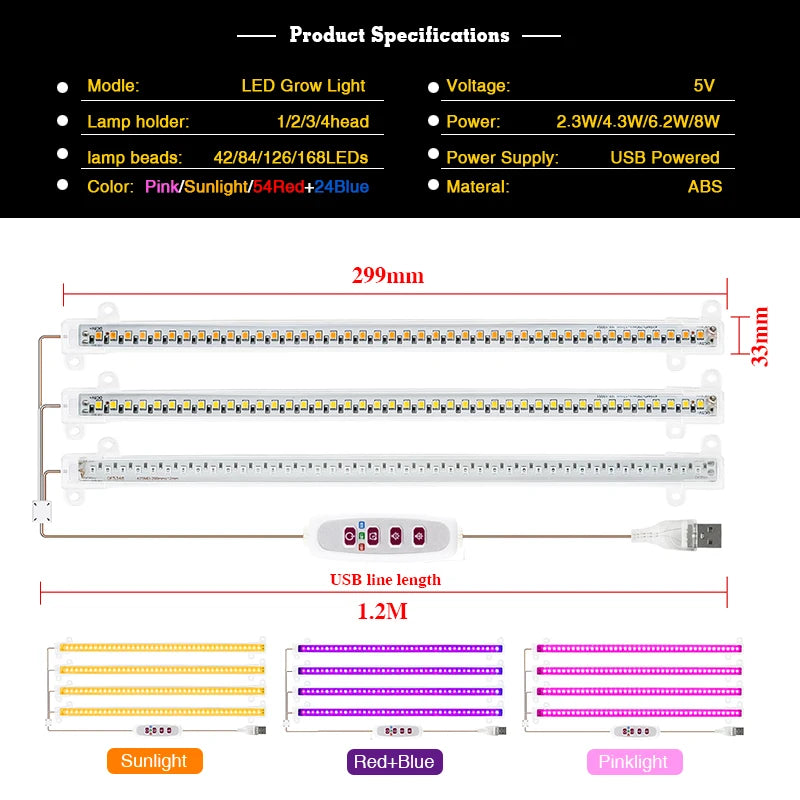 LED Grow Light Bar – 30cm USB 5V Full Spectrum Phytolamp for Indoor Plants