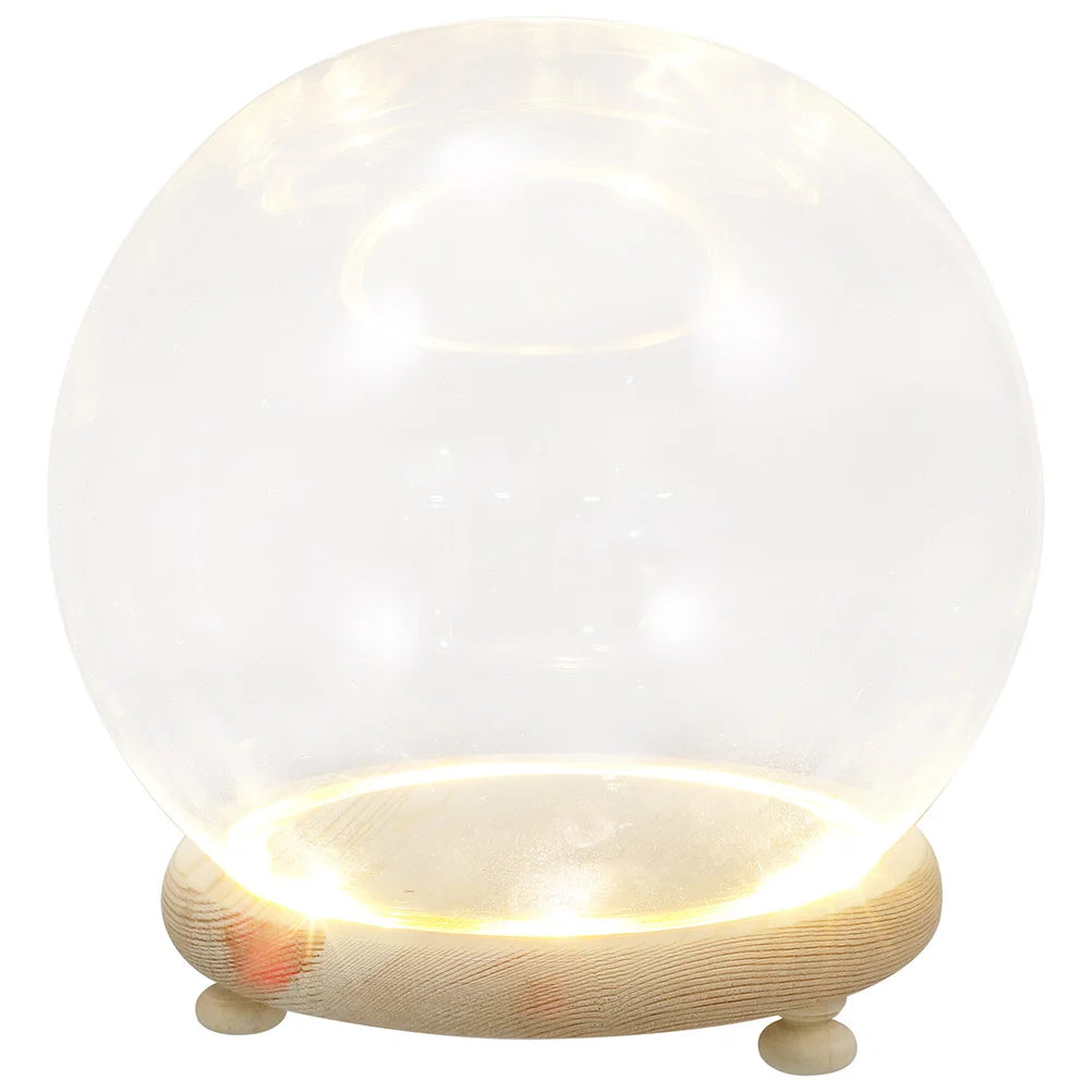 Elevate your space with this 10cm clear glass dome display case, featuring a natural wood base and built-in LED lighting — ideal for showcasing dried flowers, mini terrariums, or personalized decorations in any room or coffee shop.