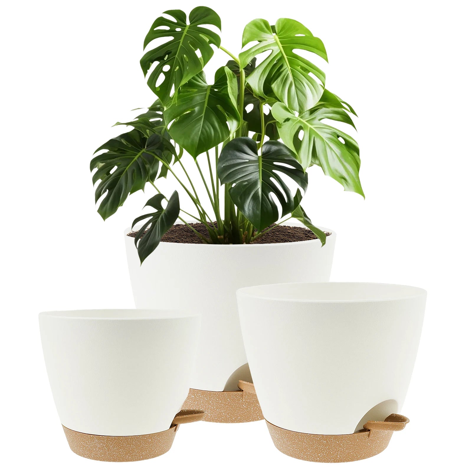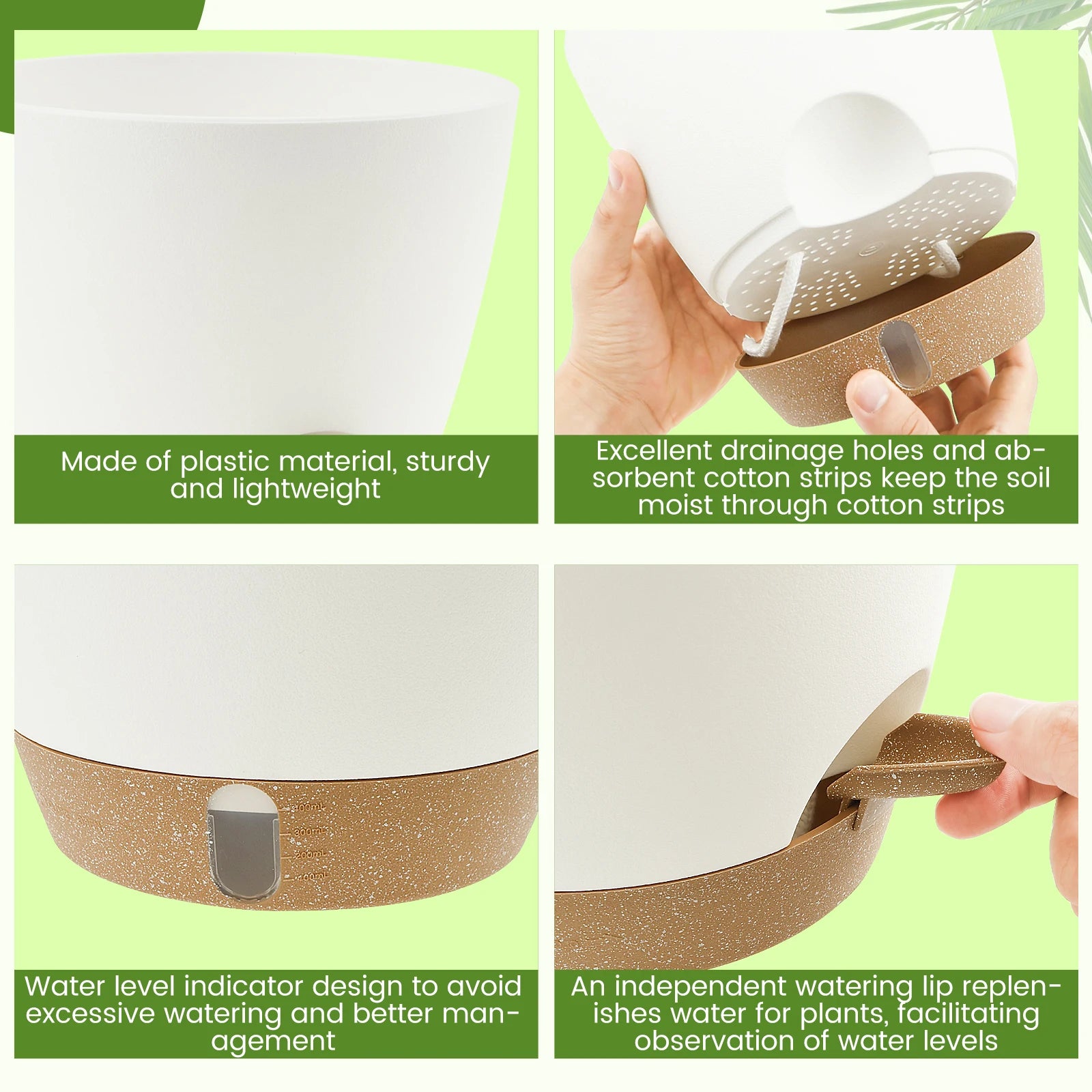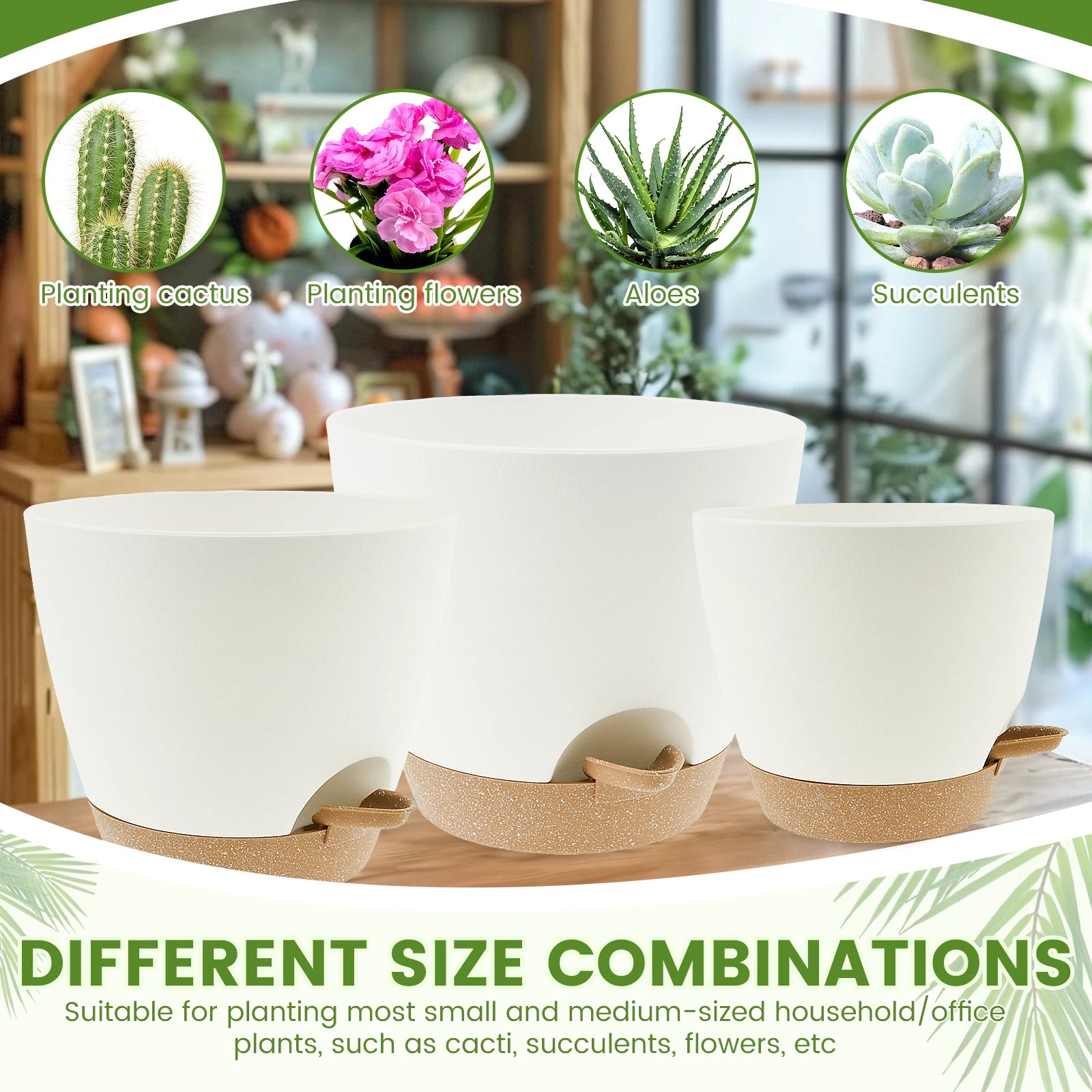 3Pcs Self-Watering Flower Pots – Automatic Water Absorption with Cotton Rope & Drainage Reservoir