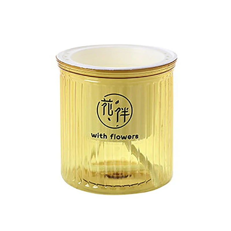 Clear, durable plastic with an integrated cotton wick for automatic water absorption.