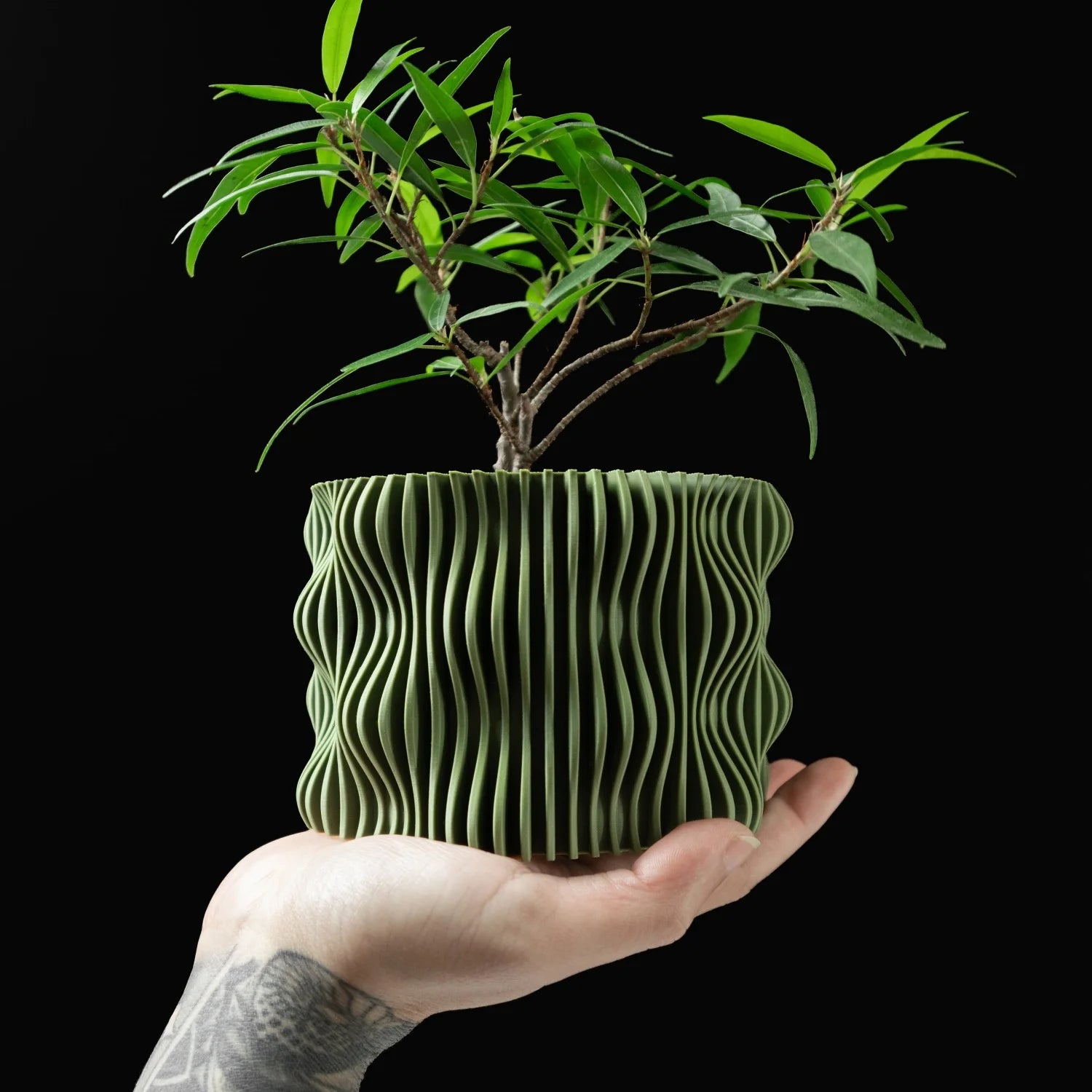 Modern Minimalist 3D Printed Plant Pot – Eco-Friendly Biodegradable Planter for Home Décor (Muxel)