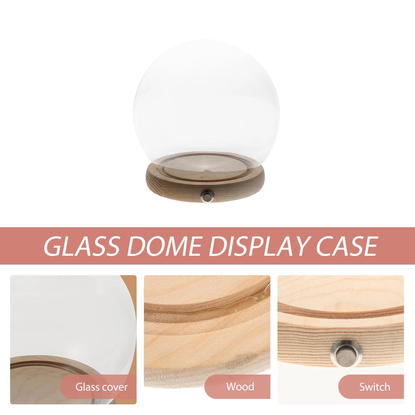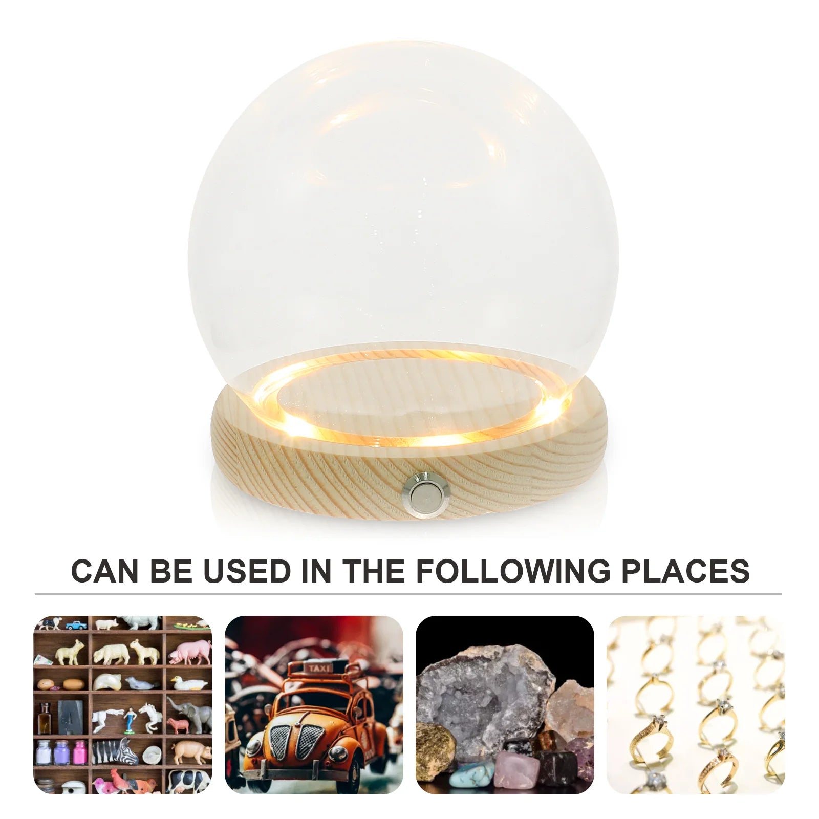 12Pcs Glowing Wooden Base Glass Dome Display Covers