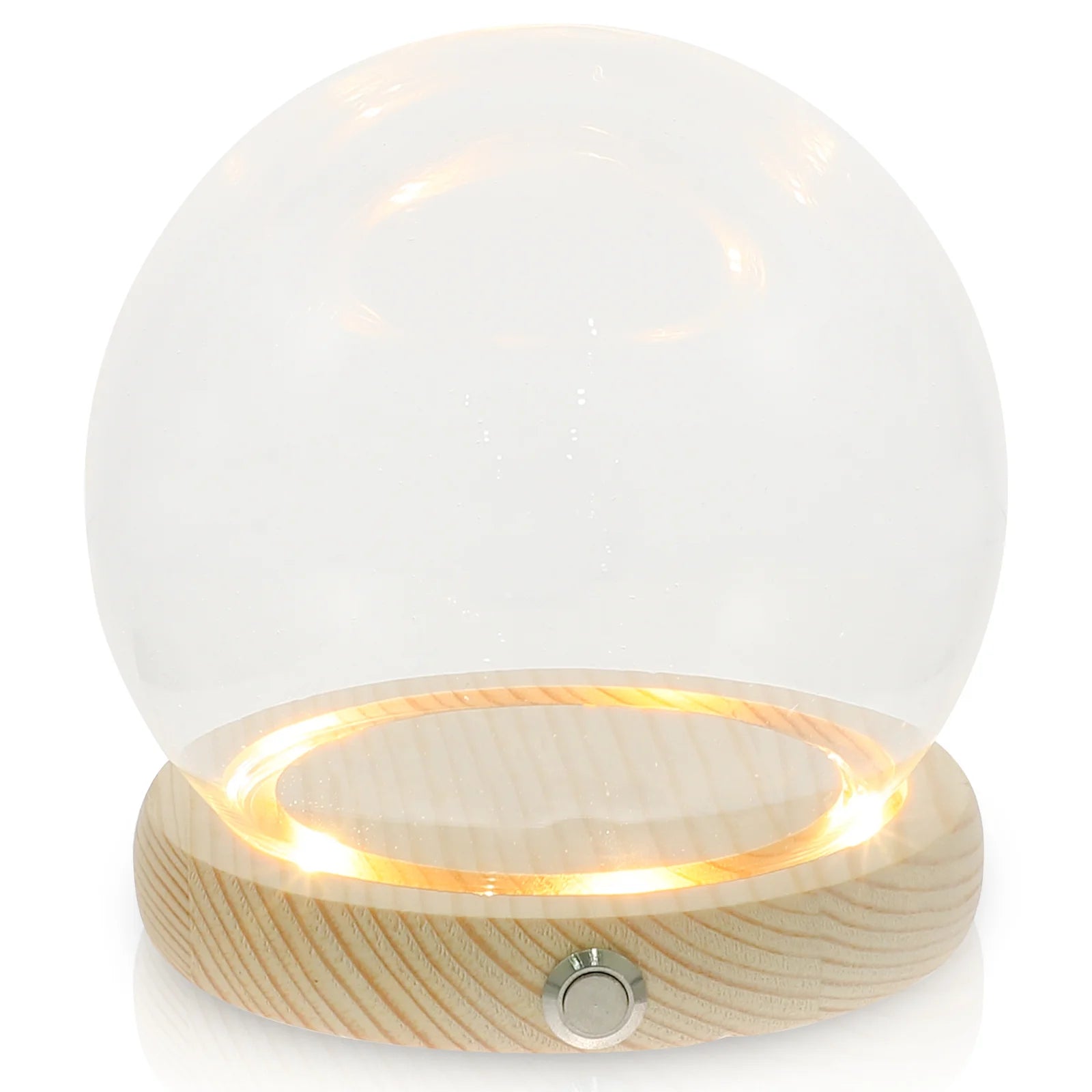 High-transparency glass dome and premium wood base with built-in LED lights.