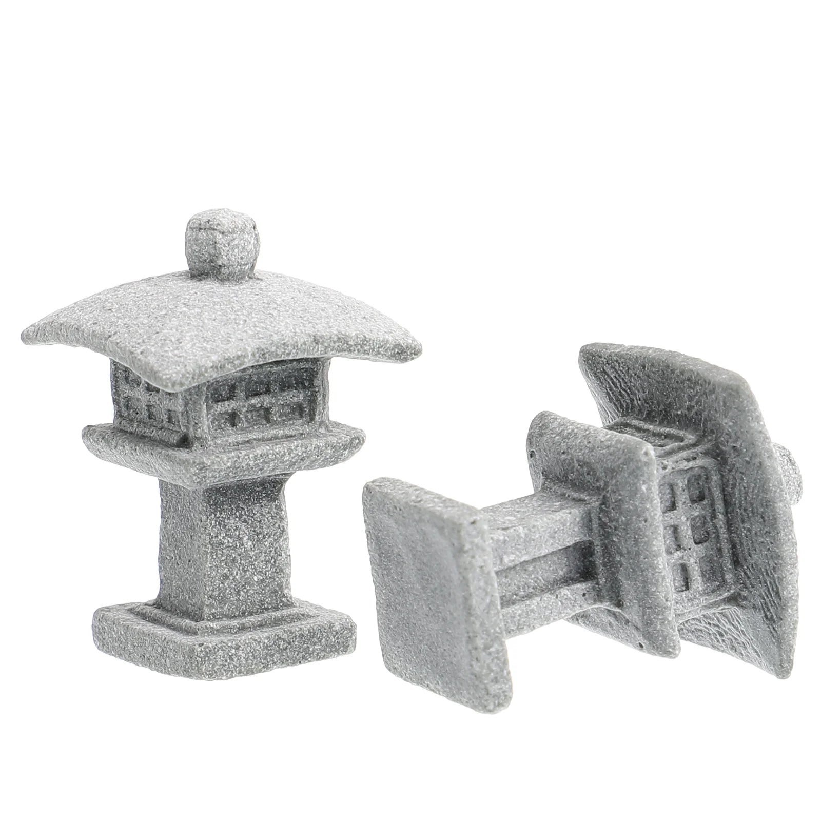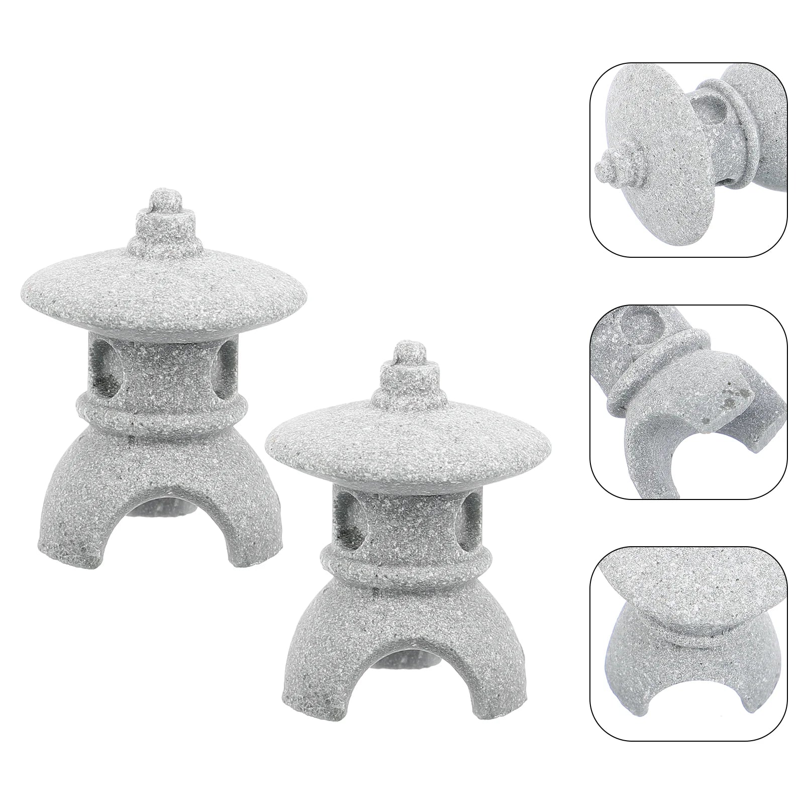 Create a tranquil atmosphere with these 2pcs miniature sandstone pagoda ornaments, perfect for Japanese Zen gardens, aquariums, terrariums, or tabletop landscapes.