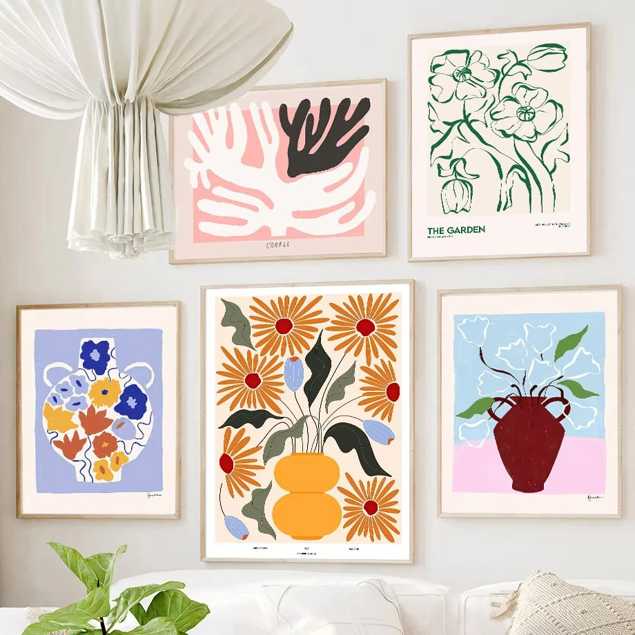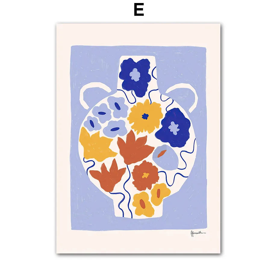 Abstract Vase Floral Wall Art – Flower Market Leaf Canvas Painting Poster