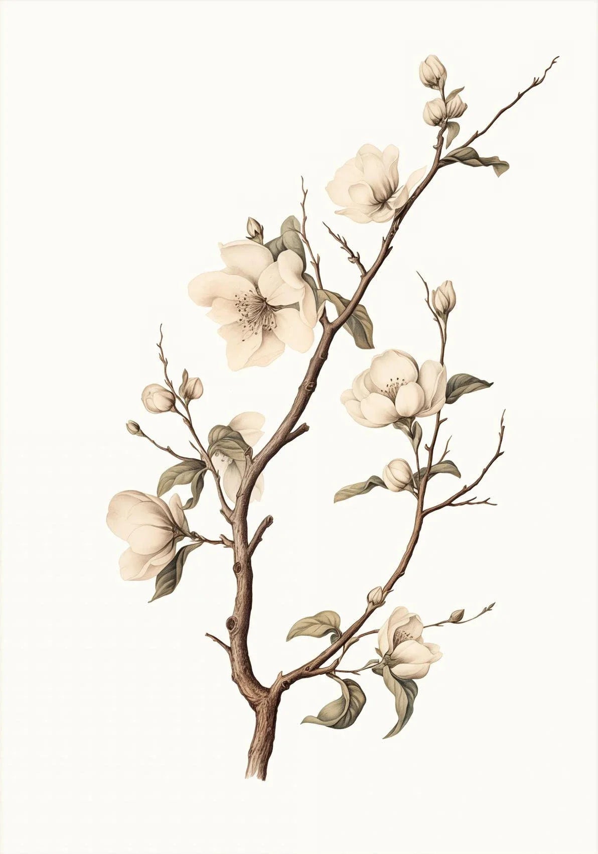 • Features detailed sketch-style botanical illustrations in soft, neutral tones