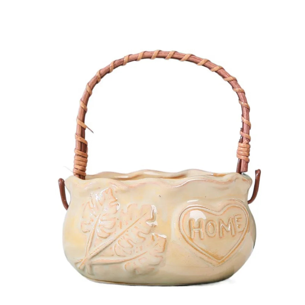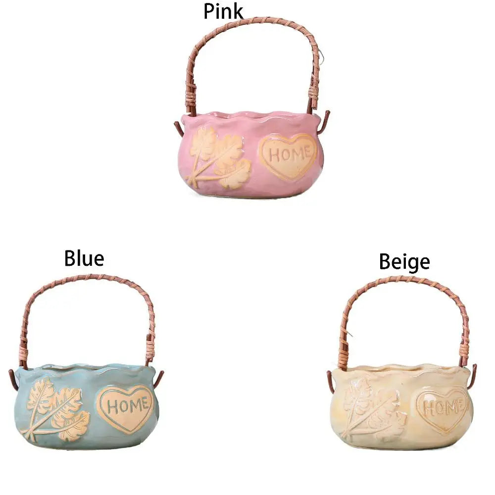 Corrosion-Resistant Ceramic Succulent Planter with Handle – Nordic Decorative Flowerpot Ornament
