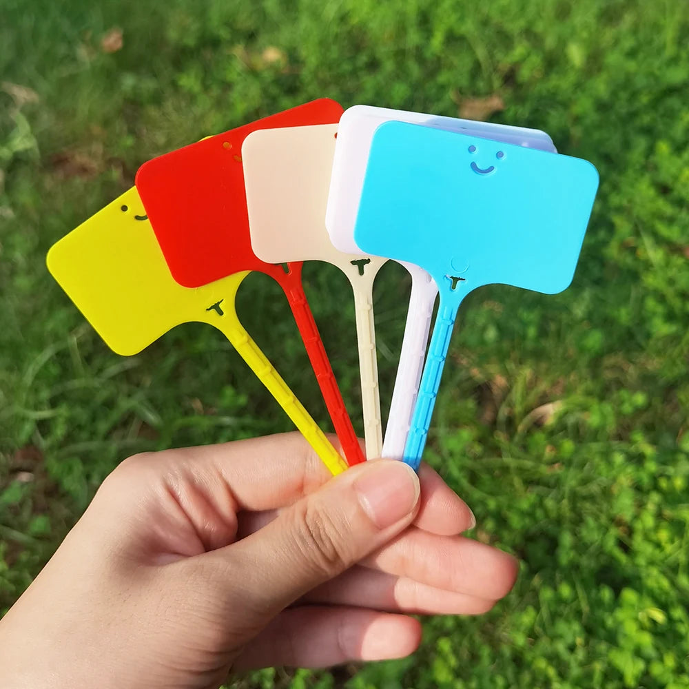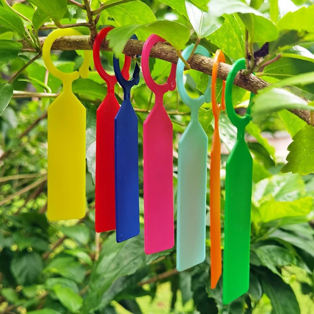 Label your garden with ease using these reusable plastic ring hook plant tags — waterproof and perfect for identifying trees, flowers, vegetables, and nursery plants.