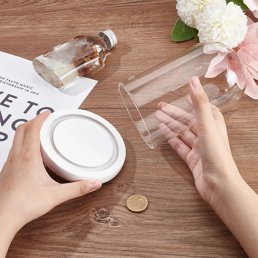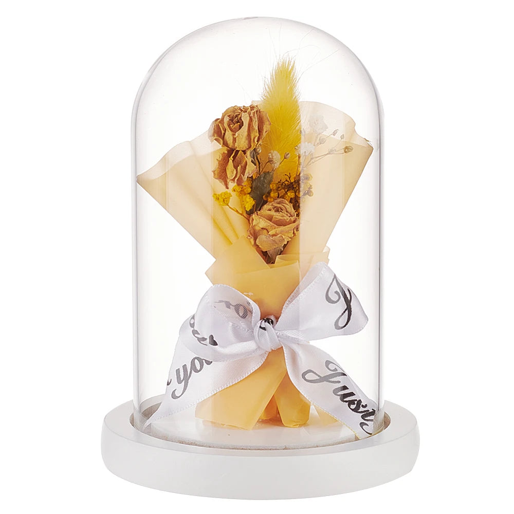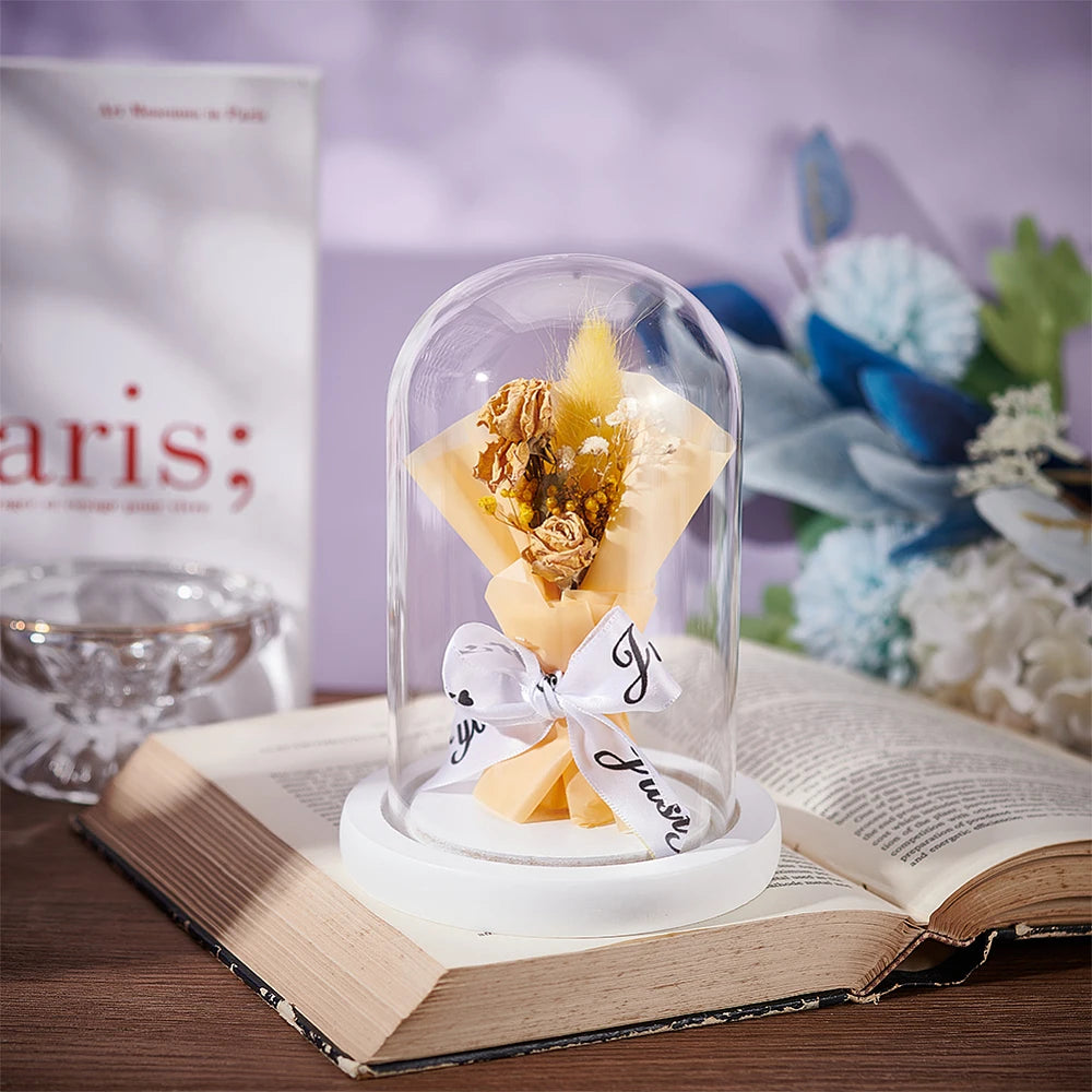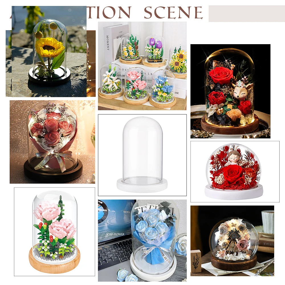 Glass Dome Cover with White Wood Base – Decorative Cloche Display Case for DIY Flower Gifts