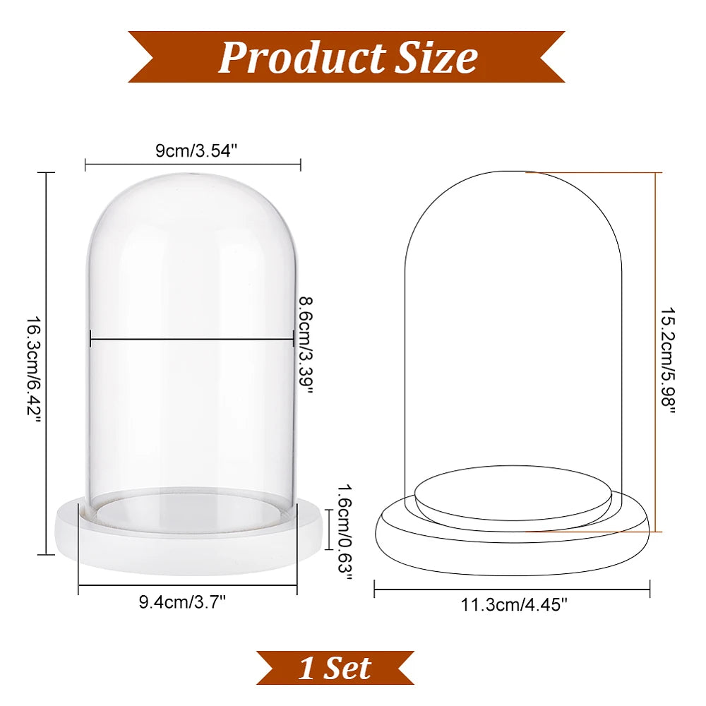 Elegant and timeless, this glass dome cover with a white-finished wood base is perfect for showcasing preserved flowers, miniatures, and handmade gifts — a beautiful centerpiece for any occasion.