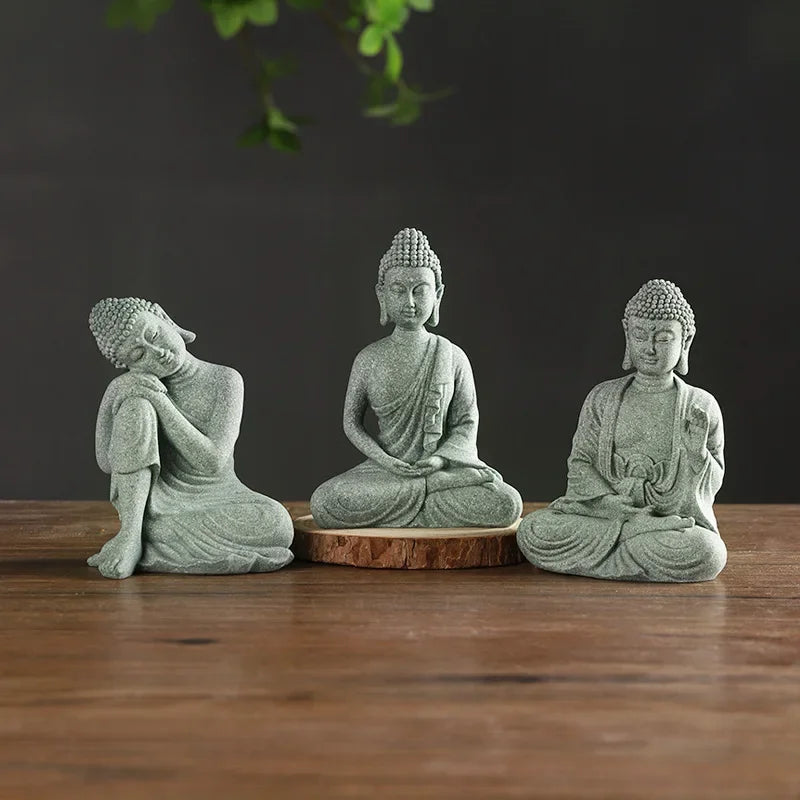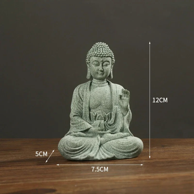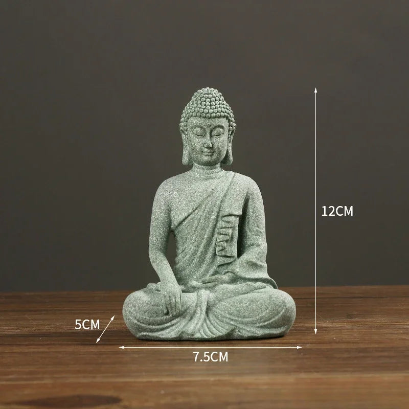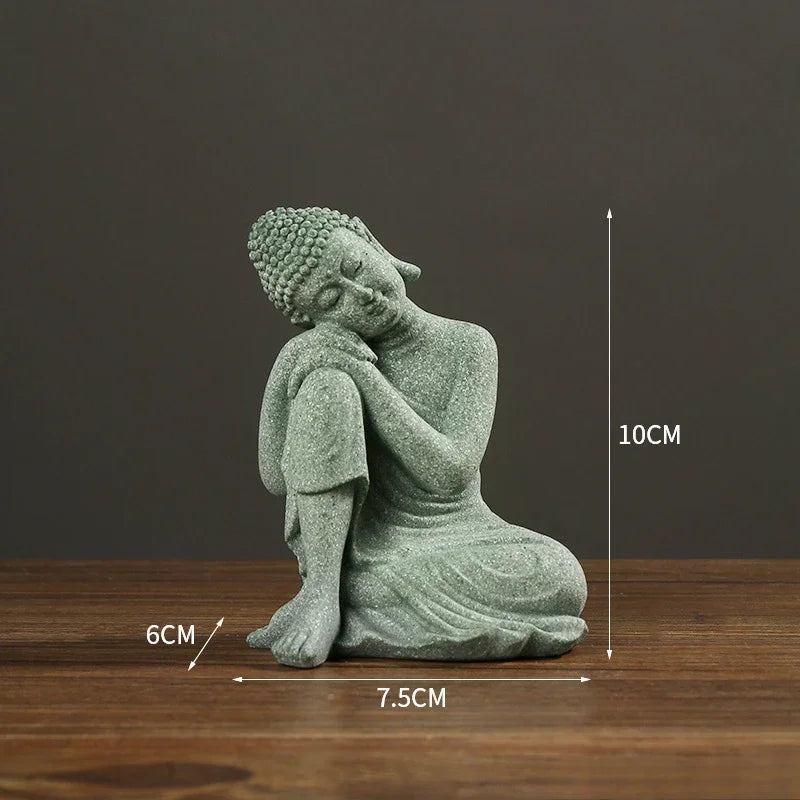 Mini Buddha Statue – Green Sandstone Fish Tank & Desktop Zen Decor Figurine