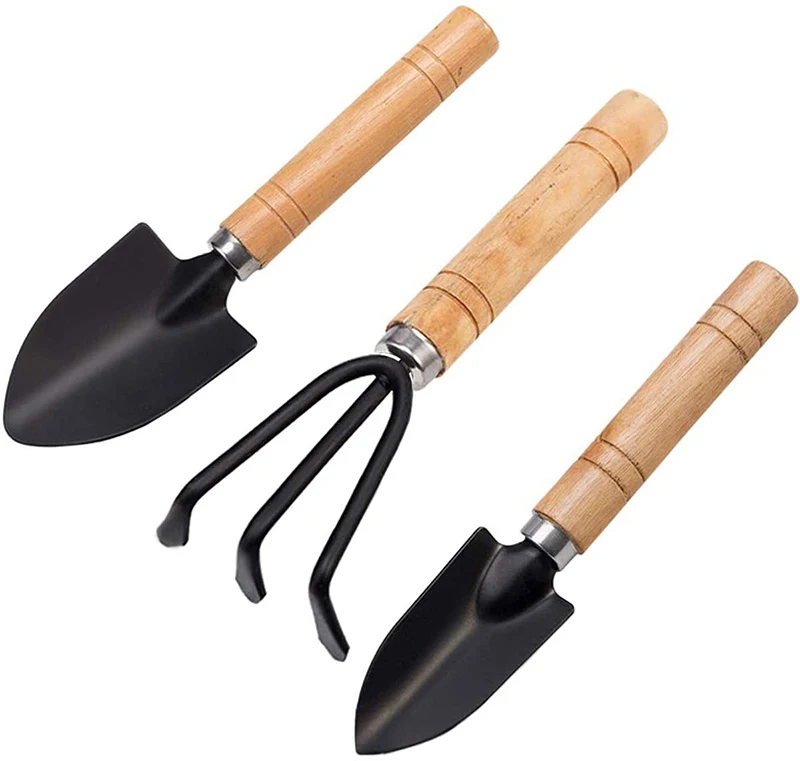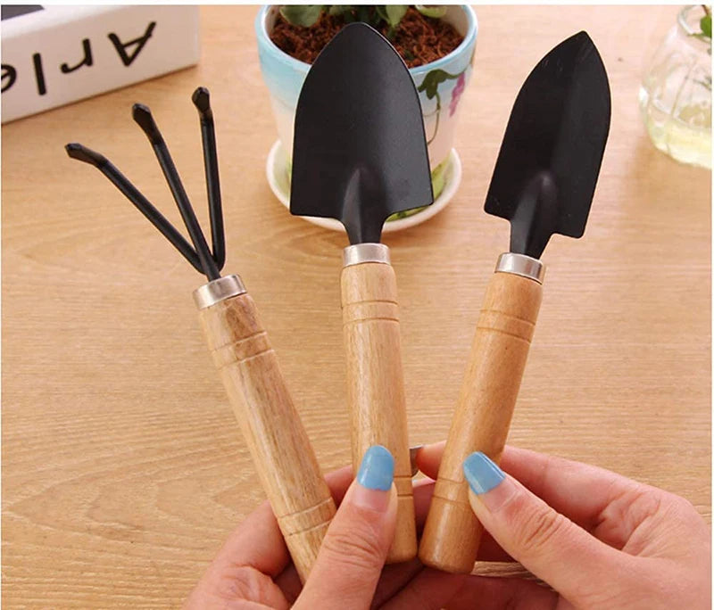 SenNan 3pcs Mini Garden Tools Set – Shovel, Rake & Spade with Wooden Handles for Bonsai & Potted Plants