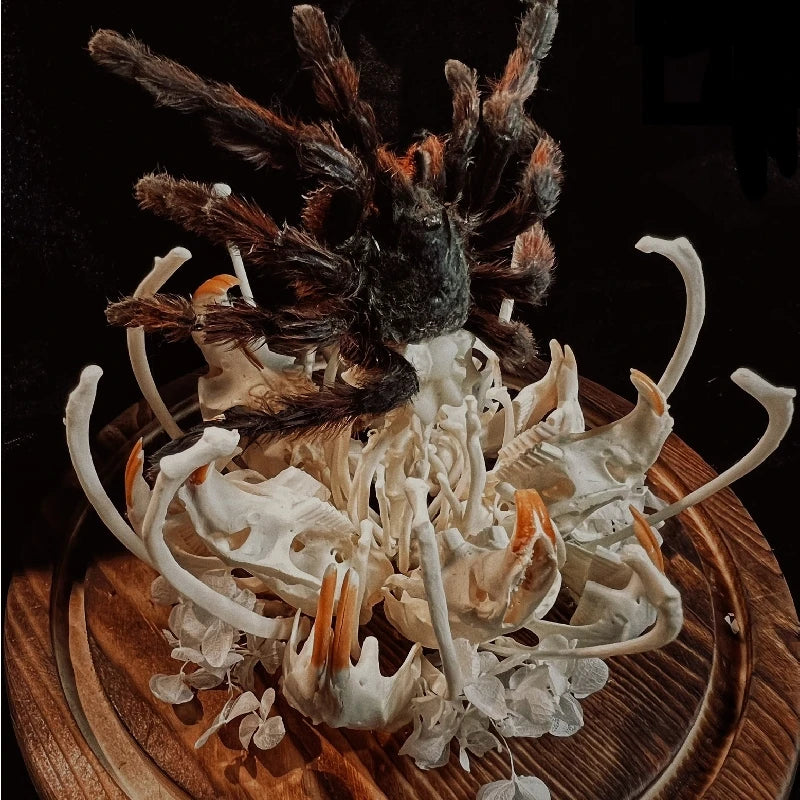 Skeleton Bone Insectivorous Flower & Spider Glass Dome – 3D Gothic Terrarium Art for Home Décor & Gifts
